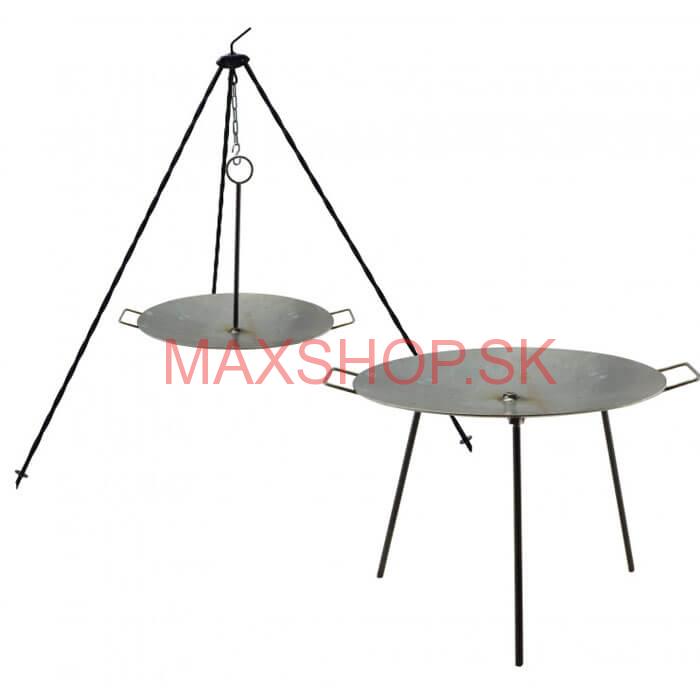 Univerzálna grilovácia panvica. Grilováciu panvicu môžete zavesiť na stojan, trojnožku alebo použiť šrobovateľné nohy a grilovať na panvici. Taktiež môžete panvicu použiť bez nôh na kotlinu alebo na ohnisko.