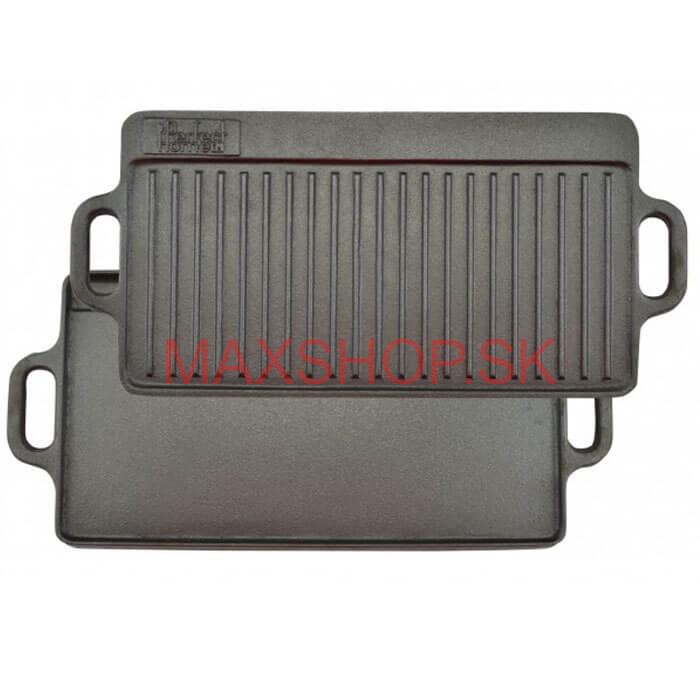 Liatinová grilovacia doska je obojstranná: povrch s mriežkami, hladký povrch.