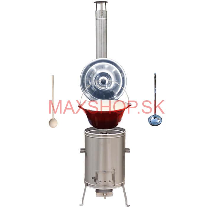 Kotlíková súprava na outdorové varenie gulášu a rybích polievok v prírode, v záhrade alebo v otvorenej kuchyne, predovšetkým pre chalupárov, chatárov, do kempu a na táborenie.