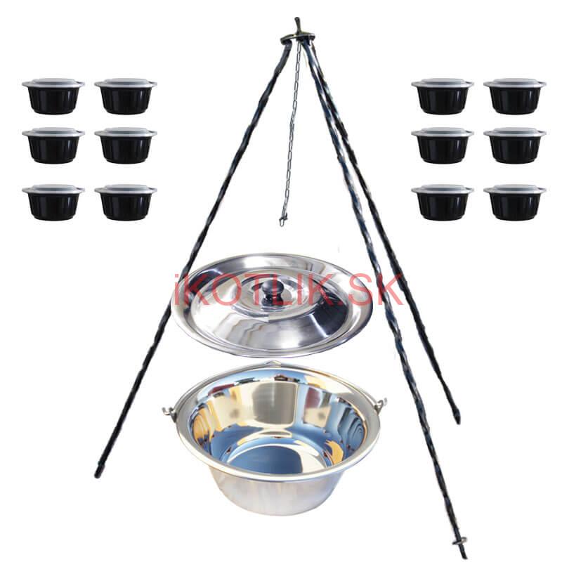 - Nerezový kotlík 8 L (0,8 mm) + antikorová pokrievka + stojan + misky 12 ks