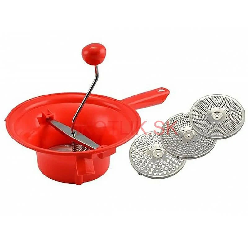 Pasirovač je ručný kuchynský nástroj, ktorý ti pomôže rýchlo oddeliť šupky a jadierka od paradajkovej dužiny. Stačí tam hodiť nakrájané paradajky, potočiť kľukou, a na jednej strane lezie čisté paradajkové pyré – na omáčky, kečup, lečo... Na druhej strane zostane len odpad. Žiadne ručné pasírovanie, žiadne špinavé sito.