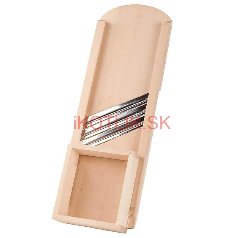 Tento poctivý drevený krájač s praktickým posuvným vozíkom je ideálny pomocník na krájanie veľkého množstva kapusty. Tri mimoriadne ostré čepele zabezpečia rovnomerné a jemné plátky bez námahy.
