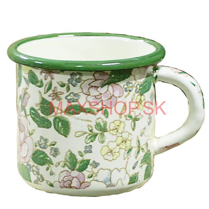 Smaltovaný hrnček. Materiál: vzorovaný smalt. Objem: 0,6 L.