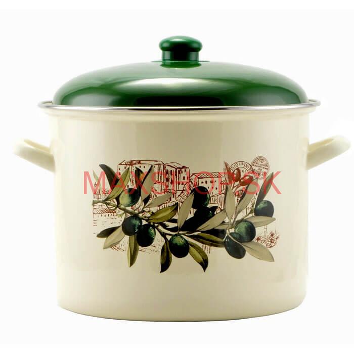 Kvalitný smaltovaný hrniec s olivovým motívom a pokrievkou.