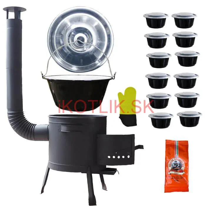 Kotlíková súprava na varenie gulášu a iných pochutín v záhrade, v prírode pre rodiny, rôzne spoločenské akcie a posedenia pri dobrom guláši.