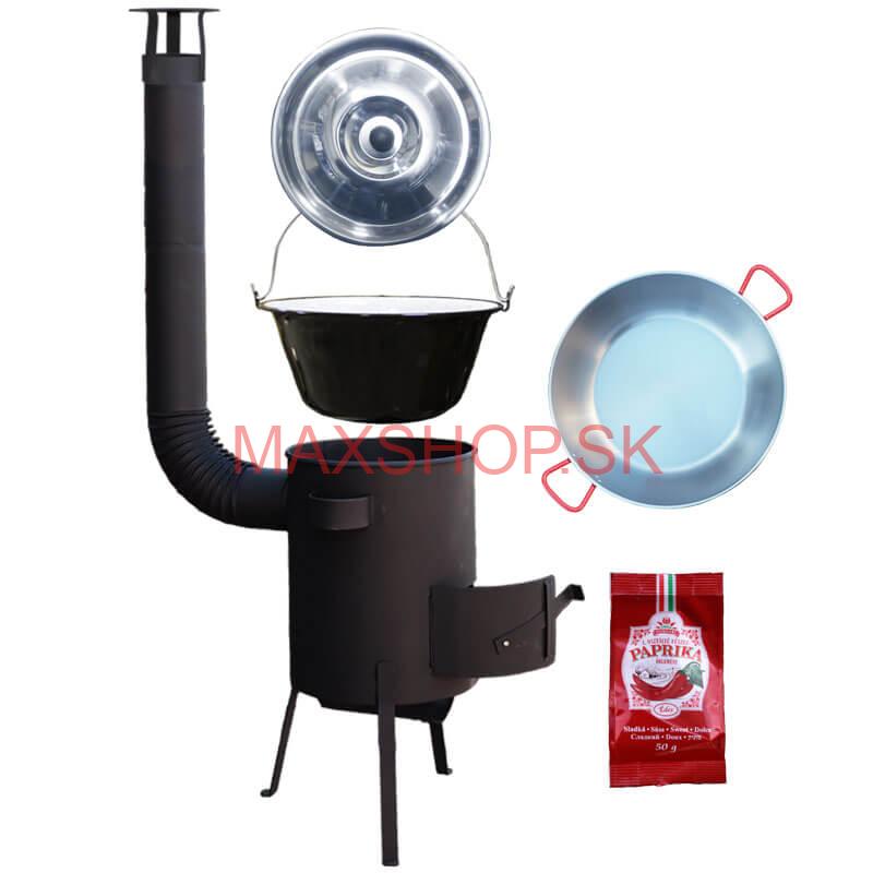 - Smaltovaný kotlík 22 L + Panvica PAELLA (WOK) 45 cm + sladká paprika 50 g + žiaruvzdorná kotlina 42 PLUS 600 s roštom na popol 4 mm